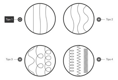 - Tipo 2 (ondulado a rizado): suele describirse como con ondas en S, con un corte transversal redondo, pero más plano que el del tipo 1.