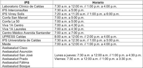 - Salamina: los interesados (18 meses hasta adultos de 59 años) deberán ir al Hospital Departamental Felipe Suárez para aplicarse esta vacuna.