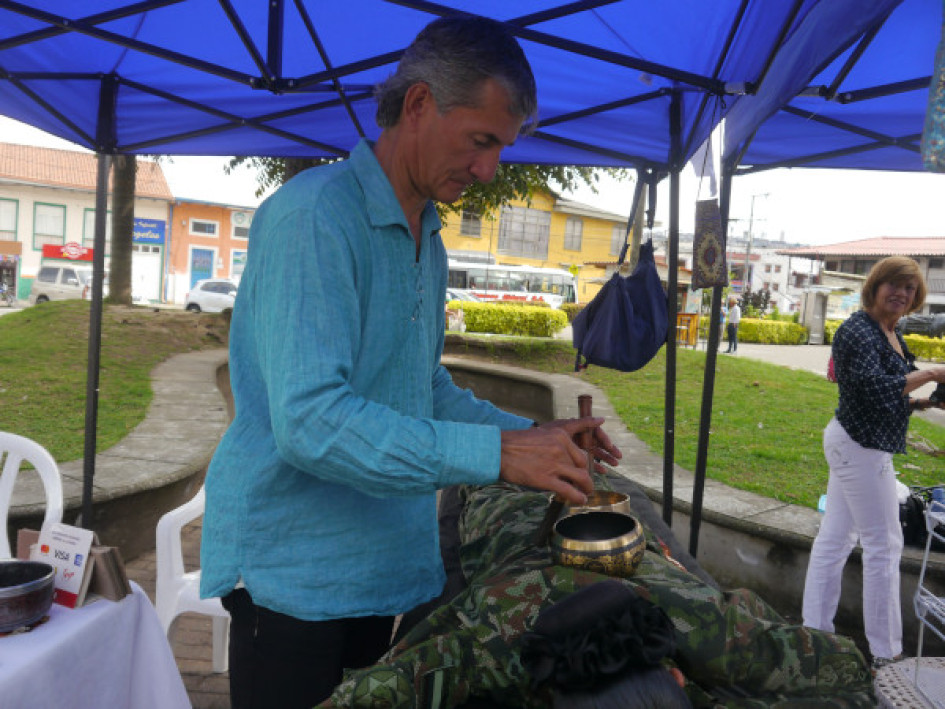 Foto | Julián García | LA PATRIA | Los cuencos tibetanos ayudan a la relajación de cuerpo, mente y alma. El terapeuta Alfonso Melo, en la imagen; mientras cumple con una sesión.