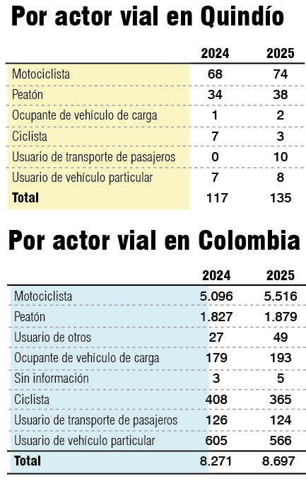 Panoramas distintos tuvieron los tres departamentos del Eje Cafetero en muertes por accidentes de tránsito durante el 2025, aunque dos estuvieron acordes a lo ocurrido en Colombia: aumentaron. El único que salvó la papeleta fue Risaralda con una disminución del 2,82%.