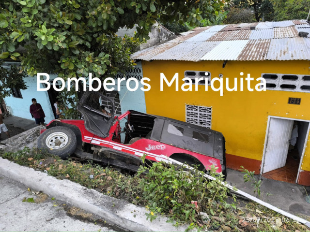 Un yip se salió de la vía y se terminó volcando al costado de unas viviendas. Miembros del Cuerpo de Bomberos atendieron a los lesionados, a quienes trasladaron al hospital. Se desconocen las causas del incidente.