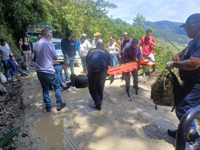 Bomberos Pácora, en compañía de la agente de Tránsito, atendió accidente en la vía a Castilla, en el sector de Las Travesías de Yarumal, con una persona lesionada trasladada al Hospital Santa Teresita.