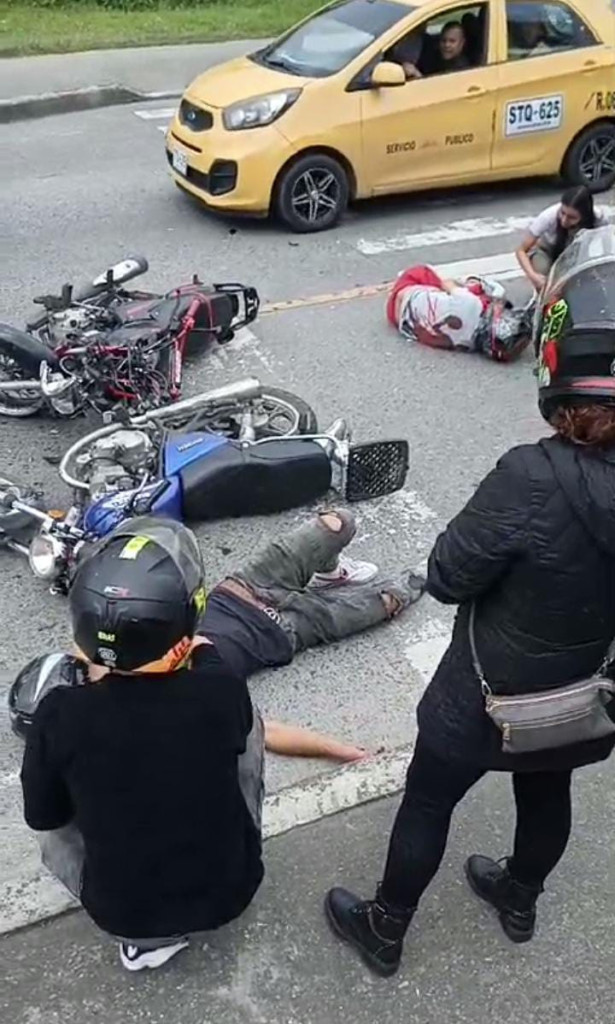 En la tarde del sábado, cerca de la estación de Policía de San Cayetano, en Manizales, dos motos chocaron y los conductores de ambas resultaron lesionados.