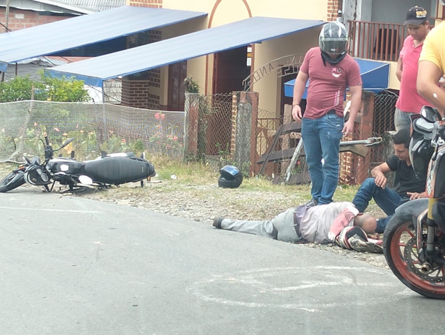 Involucrados motociclista y adulto mayor, este último auxiliado por Bomberos Pácora y trasladado al hospital Santa Teresita para su valoración.