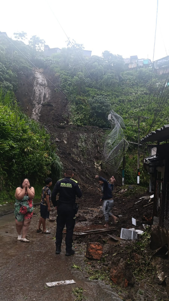 El derrumbe ocurrió en el sector Culebrero, del barrio Galán de Manizales. Una casa se destruyó por completo, otra parcialmente y la cancha local también fue afectada.