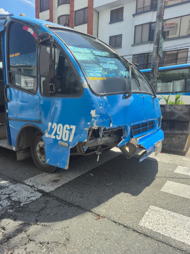 Chocaron aparatosamente una buseta de Socobuses y un carro particular. El reporte inicial es de dos personas lesionadas.