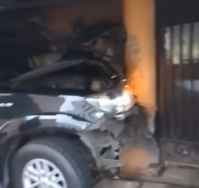 Un carro terminó con la parte delantera destrozada, luego del siniestro vial. Al parecer, no hubo lesionados de gravedad.