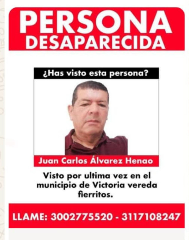 Juan Carlos Álvarez Henao lleva dos días desaparecido en zona rural de Victoria.