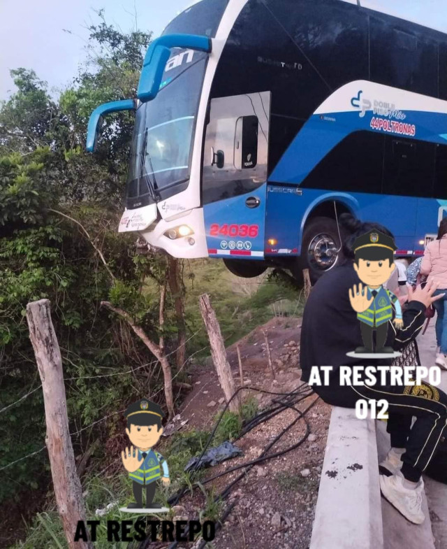 En la mañana de este miércoles un bus de dos pisos de la empresa Copetran se salió de la vía entre Guaduas y Honda, quedando sobre un muro construido recientemente como barrera de seguridad.
