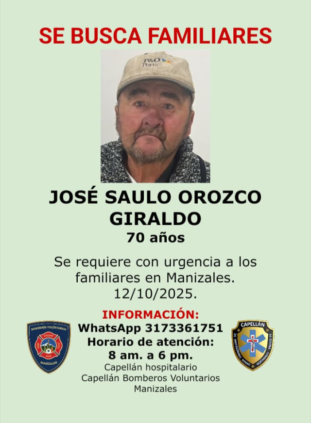 De otro lado, requieren a familiares o allegados de este hombre. Puede llamar al número del volante.