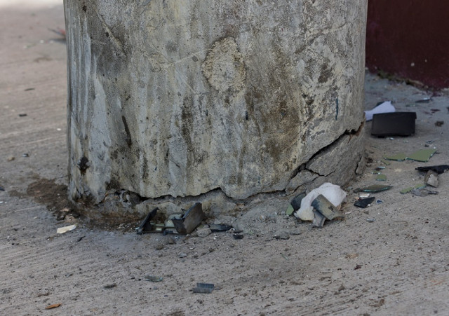 La base del poste presentó daños. La Chec indicó que no es de su propiedad.