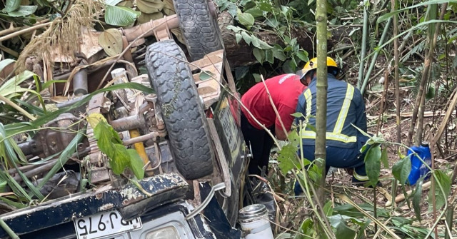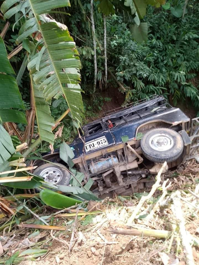El accidente ocurrió cuando el campero se precipitó hacia un abismo. Afortunadamente no se reportaron víctimas fatales en el accidente. Placa, UPJ975.
