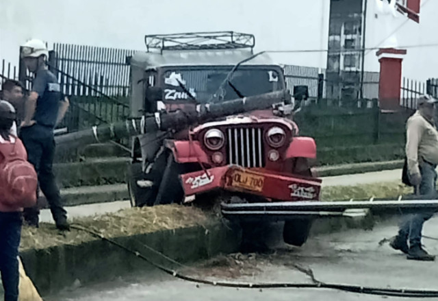 Un campero colisionó contra un poste de energía de la Central Hidroeléctrica de Caldas (Chec), en la calle del cementerio de la población.