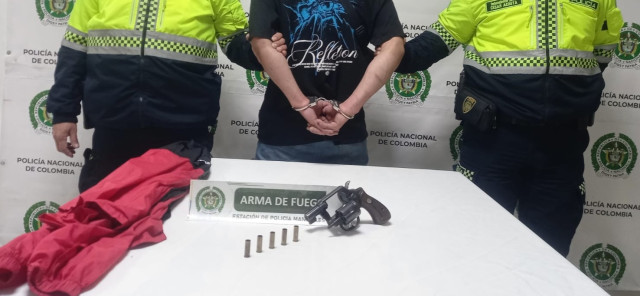 La Policía informó que el hombre cuenta con una condena de seis años por concierto para delinquir; y otra, de 2 años y 7 meses, por hurto calificado y agravado. Quedó en manos de la Fiscalía, para que responda esta vez por porte ilegal de armas de fuego.