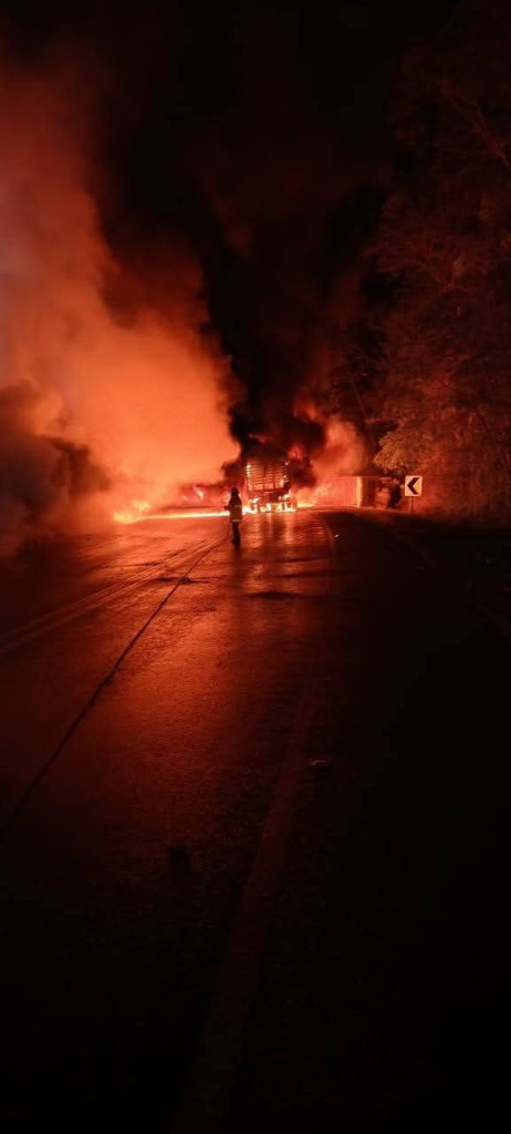 Chocaron dos tractocamiones presentándose el incendio en los vehículos.