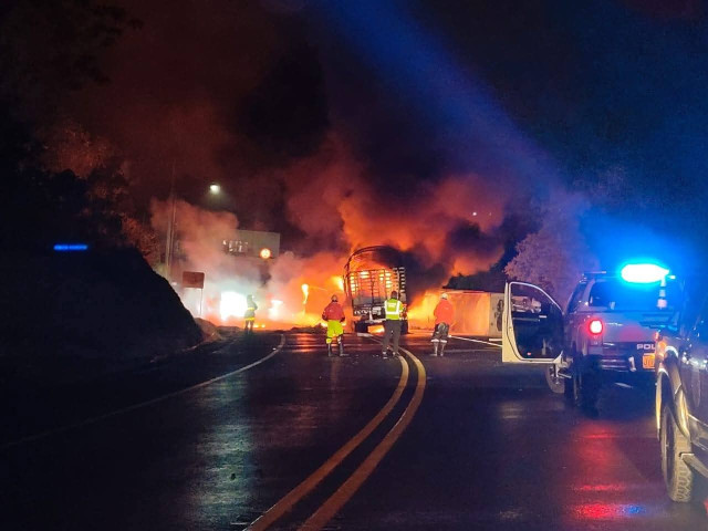 A las 2:05 de la mañana reportaron incendio vehicular cerca del túnel de Irra, vía Manizales-Medellín.