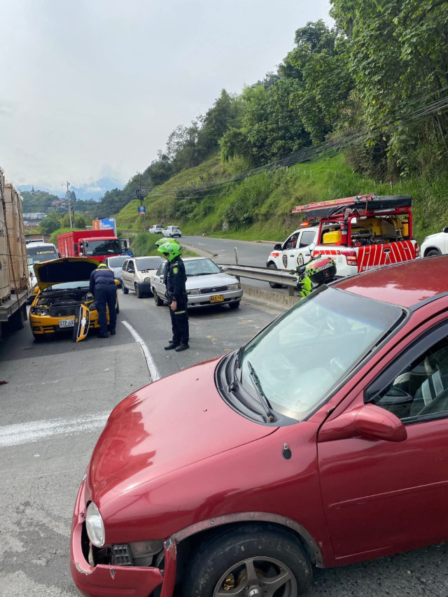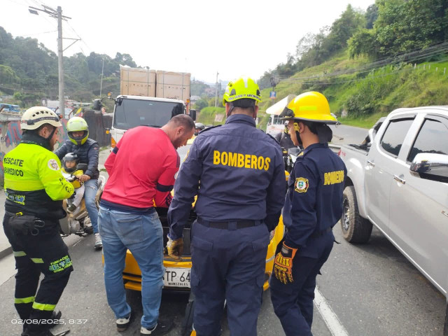 A esta hora se atiende un accidente de tránsito en la entrada de Villamaría (Caldas), producto de la colisión entre dos vehículos.