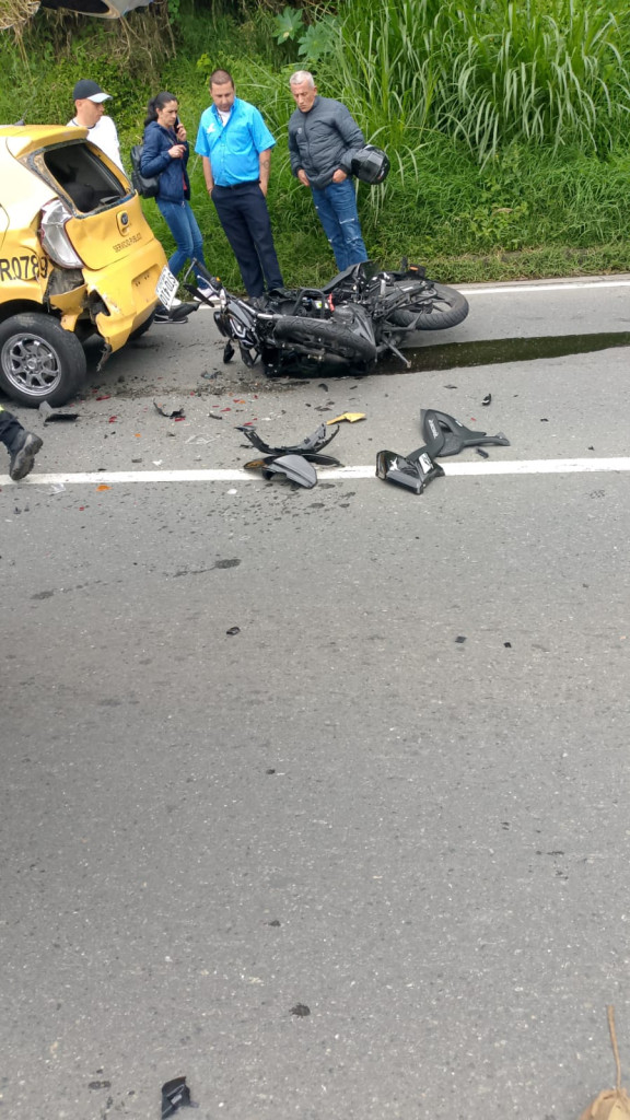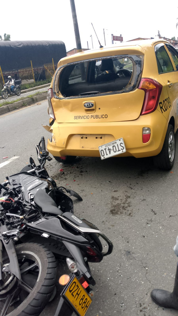 Una moto y un taxi colisionaron a las 11:45 de la mañana de este lunes (2 de febrero) en la Panamericana, a su paso por Manizales.