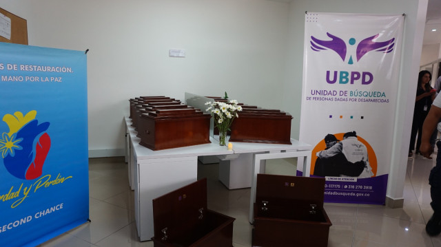El acto de entrega fue íntimo y cargado de simbolismo. 21 cofres recibió Luz Janeth Forero, directora de la Unidad de Búsqueda de Personas Dadas por Desaparecidas (UBPD).