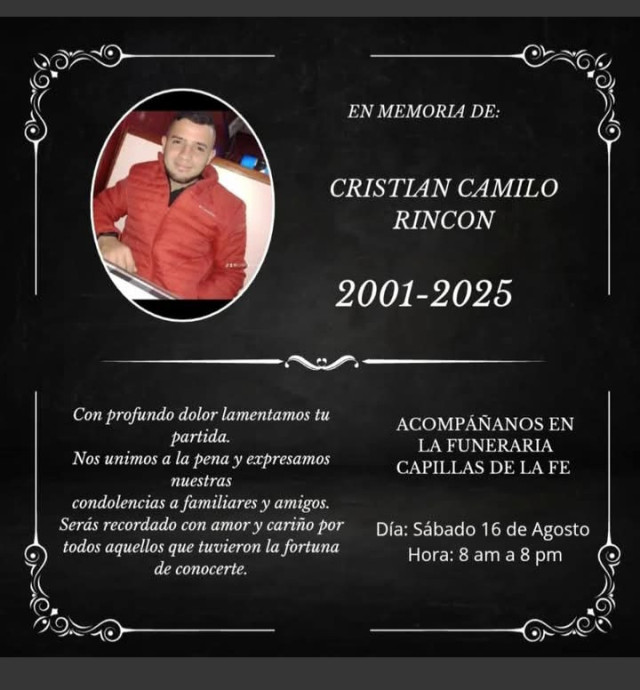 Cristian Camilo Rincón González, de 24 años, perdió la vida este jueves 14 de agosto en la avenida Paralela de Manizales, detrás del LANS Femenino (hoy sede de la Universidad de Caldas).