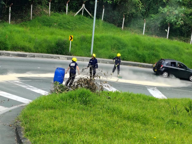 El Cuerpo Oficial de Bomberos de Manizales realiza una labor clave para la seguridad vial: el control y la limpieza de derrames de aceite en diferentes vías de la ciudad, previniendo accidentes y protegiendo a conductores, motociclistas y peatones.