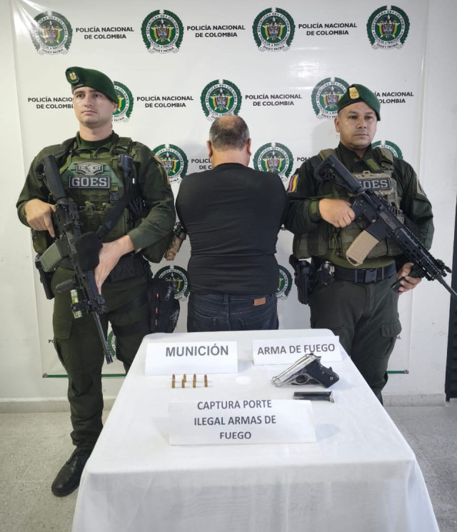 Por el sitio transitaba un hombre, de 48 años, a quien notaron con una actitud sospechosa, lo abordaron y tras requisarlo, le hallaron una pistola calibre 7.65 con un proveedor y munición.