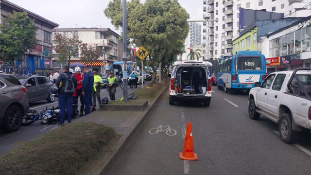 Uno, atendido por el GER en la carrera 23 con calle 52. Una moto chocó contra un carro. Jhon Ánderson Hernández Restrepo, de 30 años, el lesionado, con dolor y limitación funcional. Llevado a La Presentación.
