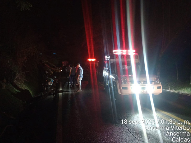 Según el reporte oficial, un motociclista colisionó contra un árbol que se encontraba caído sobre la vía, dejando como saldo dos personas lesionadas. En la valoración inicial, ambos presentaban politraumatismos, por lo que fueron estabilizados en el lugar y posteriormente trasladados al Hospital San Vicente de Paúl.