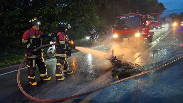 De acuerdo con el reporte de los organismos de socorro, la motocicleta se incendió como consecuencia del impacto, situación que fue controlada por los bomberos para evitar la propagación del fuego y nuevos riesgos en la vía.