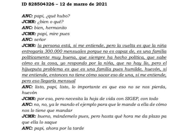 - 5. Ocultamiento, alteración o destrucción de material probatorio. "Una interceptación telefónica, por el allanamiento del 3 de marzo del 2022 en Manizales, muestra que le ordenó a su esposa, Paula Andrea Díaz Vergara (enfrenta proceso por el mismo delito), destruir un DVR que tendría imágenes importantes para la investigación"