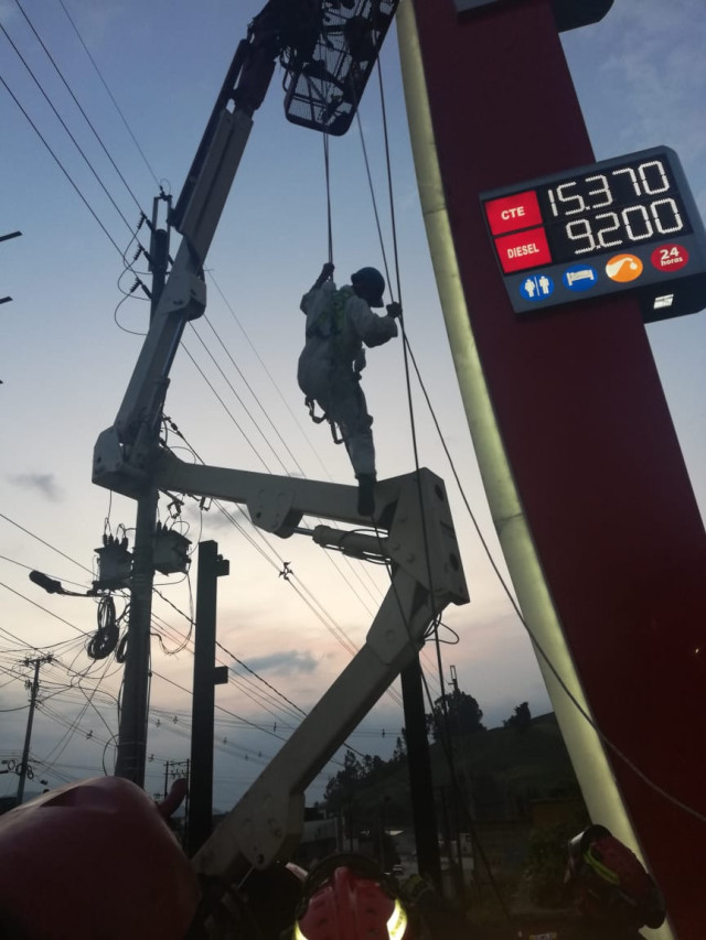 En la tarde de ayer se reportó una emergencia con el operario de una pluma (grúa) en Maltería, en la estación de servicio frente al Recinto del Pensamiento.