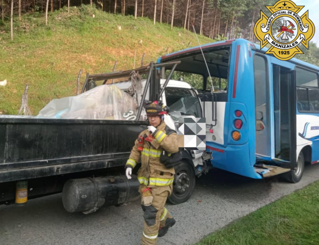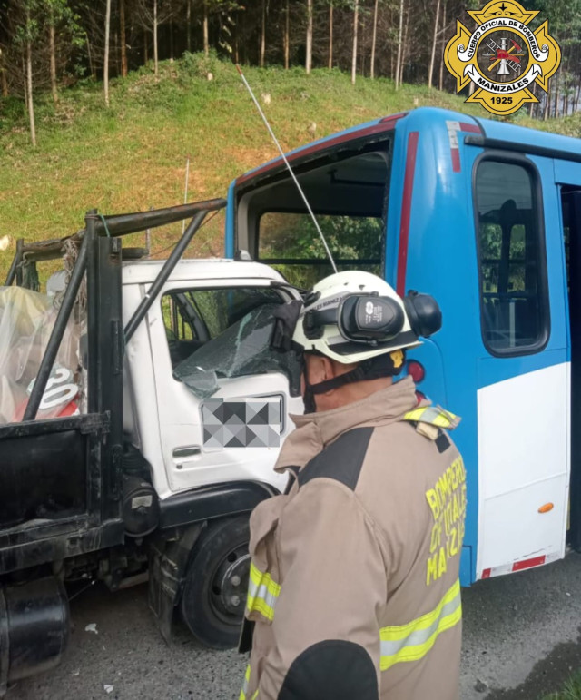Se atendió llamado por accidente de tránsito en la vía Sena -Panamericana, entre camión y buseta, en Manizales.