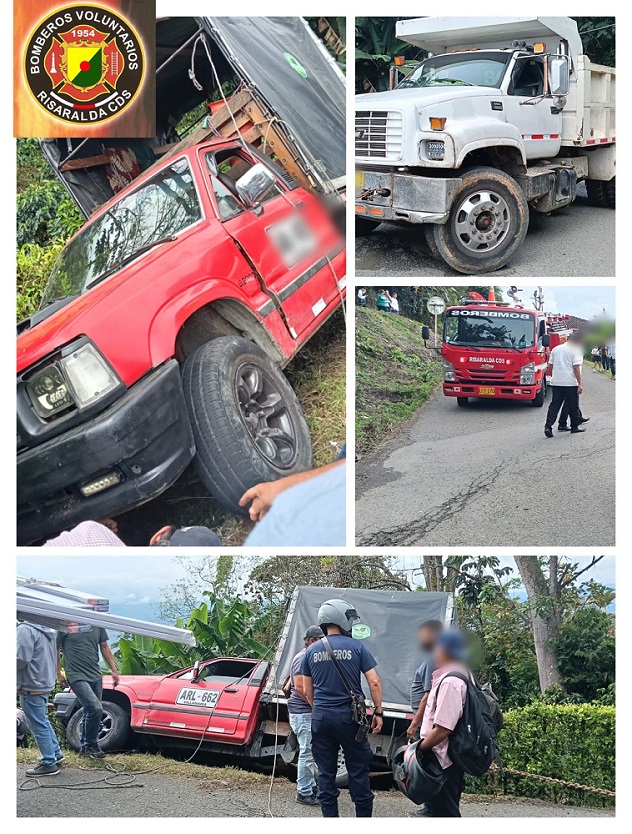 En otro accidente, ocurrido en la mañana, en la carretera a Anserma y cerca del casco urbano, en el sector de Agua Bonita, una camioneta de estacas se salió de la carretera y estuvo cerca de volcarse.