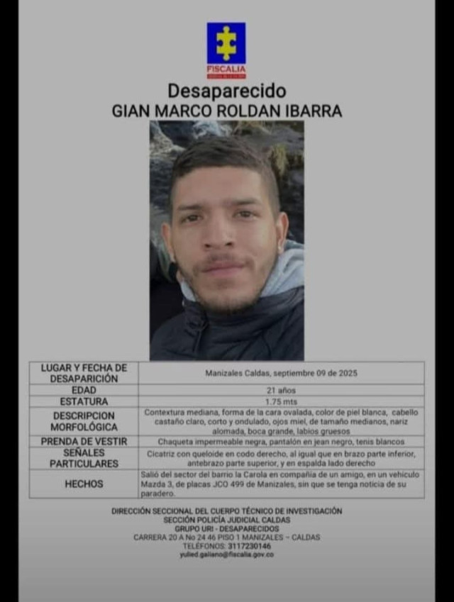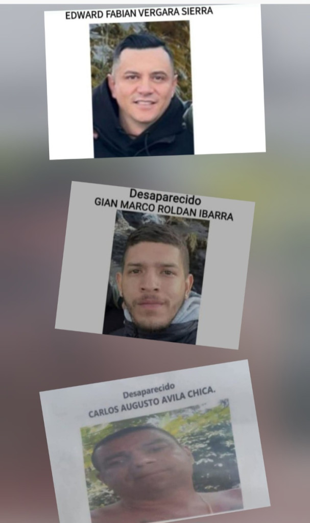 Este viernes 12 de septiembre se conocieron dos casos más de personas que salieron juntas de La Carola, en un Mazda, desde el 9 de septiembre, y hasta ahora se desconoce su paradero. Sus nombres son Gian Marco Roldán Ibarra y Edward Fabián Vergara Sierra.