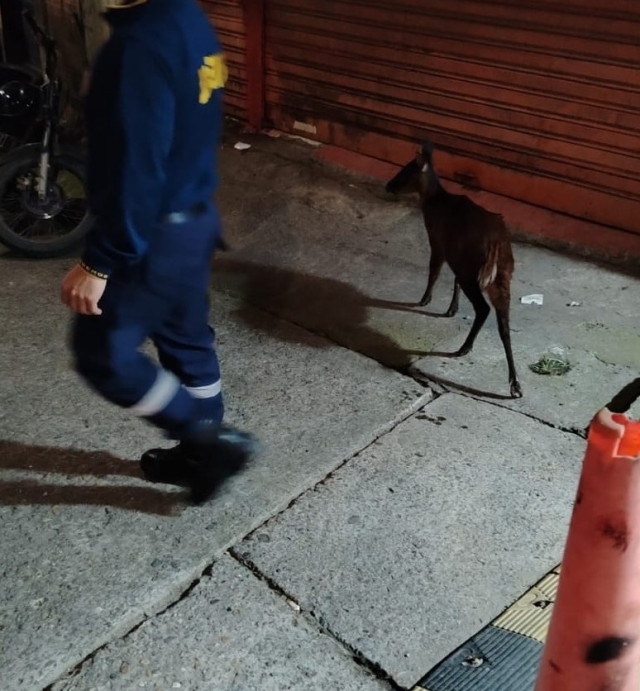 El comandante, Fabián Mauricio Restrepo, contó que una vez capturaron al ciervo, lo entregaron a funcionarios de Corpocaldas, quienes se encargarán de verificar su estado de salud y si es posible liberarlo.