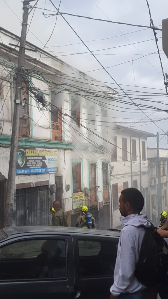 En la calle 24 con carrera 19, una vivienda de dos plantas, construida en bahareque, donde funcionan dos ebanisterías y un taller de soldadura, resultó afectada por un incendio estructural que fue atendido de manera oportuna por el Cuerpo Oficial de Bomberos de Manizales.