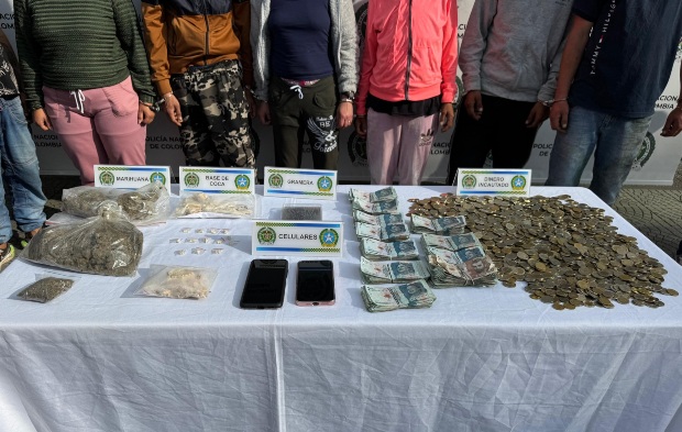 Además de las capturas, en las diligencias de allanamiento se incautaron 527,85 gramos de marihuana, 430,47 de base de coca, $10 millones 637 mil 500 en efectivo al parecer producto de la comercialización de los narcóticos, tres teléfonos celulares, una gramera, material de empaque y dos cuadernos con manuscritos que contenían registros de nombres y cuentas.