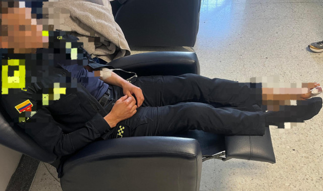 3. Al ver su actitud sospechosa, los agentes trataron de abordarlo, pero este los atacó a bala e intentó huir. Sin embargo, le respondieron y cuando pretendía escabullirse por las escalas que comunican con el colegio Leonardo Da Vinci, alcanzaron a reducirlo, tras dispararle en una rodilla, y lo capturaron. Se incautaron de un revólver calibre 38, un celular y moto AKT Nkd modelo 2022, negra.