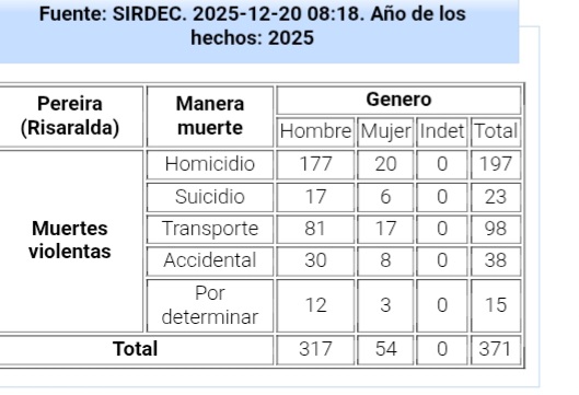Sigue la preocupación entre la comunidad por la ola de homicidios. Este es el corte de muertes en Pereira, según Medicina Legal, a corte de este sábado en la mañana.