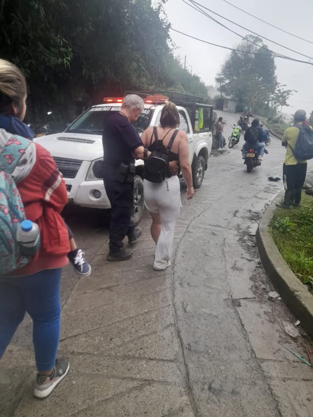 Fotos Cortesía de Bomberos | LA PATRIA Bomberos atendió a la paciente que fue embestida por una vaca.