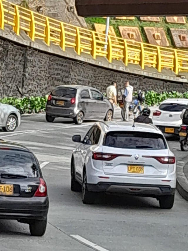 7:35 a.m. Accidente en la salida del intercambiador vial de la Universidad Autónoma hacia Fundadores, en Manizales. Hay trancón.