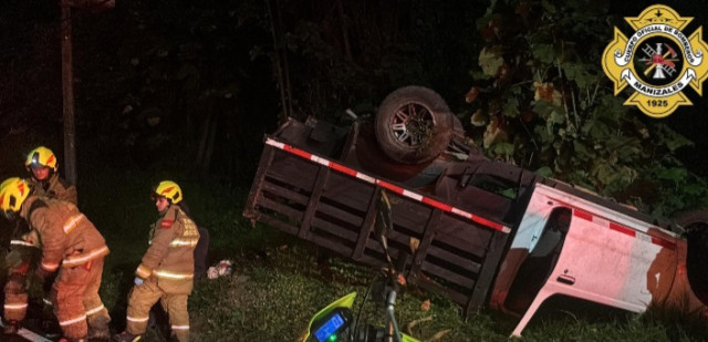 Se atendió pasadas las 9:30 de la noche de este miércoles (5 de noviembre) un siniestro vial, con volcamiento total de una camioneta, en la doble calzada, sector de la Chec, Estación Uribe.