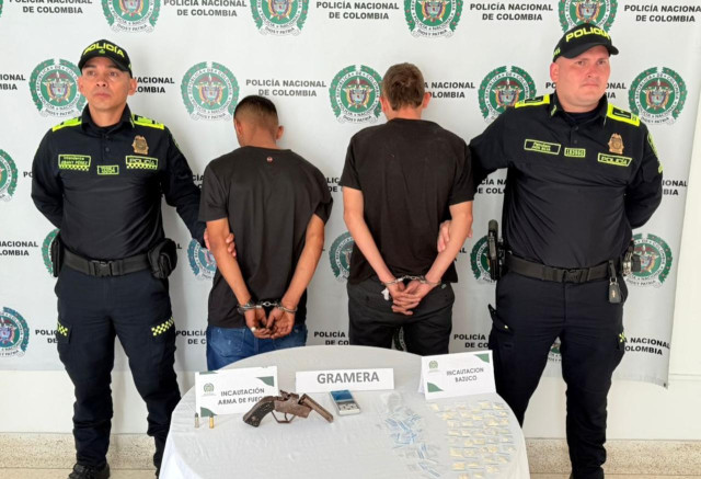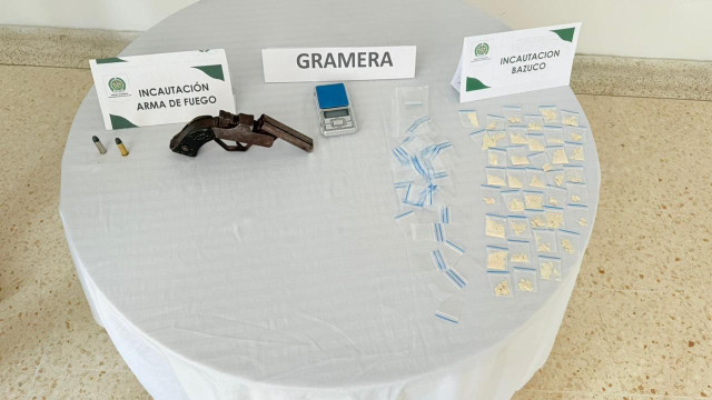 Les incautaron un revólver calibre 38, 2 cartuchos de este mismo calibre, 15 gramos de bazuco y empaque.