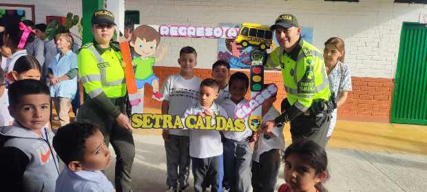 En la Institución Educativa Eduardo Gómez Arrubla, de Chinchiná, Dirección de Tránsito y Transporte en Caldas adelantó actividades relacionadas con la seguridad vial y el inicio de la temporada escolar 2025.