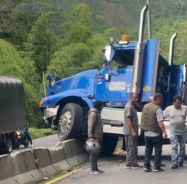 Fotos | Cortesía | LA PATRIA Esta es la tractomula accidentada y que mantiene cerrado el paso de Manizales hacia Medellín y Pereira.