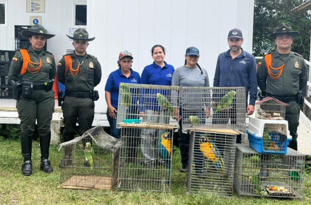 En Marquetalia y Victoria ejecutaron acciones de prevención y control que permitieron la aprehensión preventiva de 12 individuos de fauna silvestre. Entre las especies se encuentran dos guacamayas azul y amarilla, siete loras frente amarillas, una lora real y dos sinsontes.