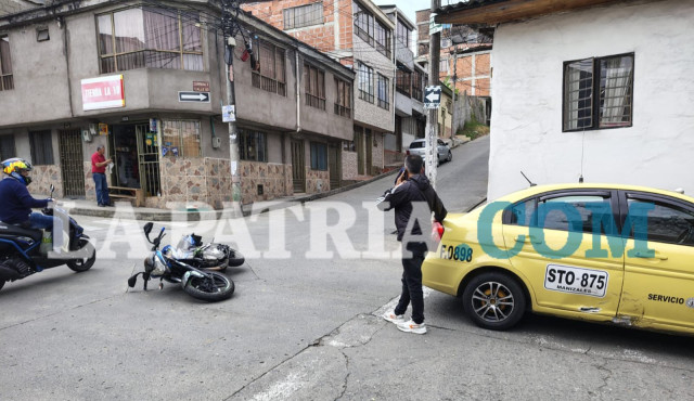 Una moto y un taxi protagonizaron un choque en la tarde de este viernes, en el cruce de la carrera 7 con calle 10, en Villamaría.