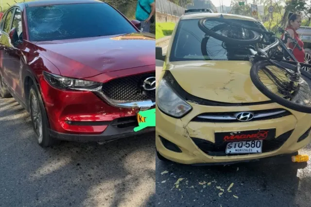 Un carro rojo arrolló este domingo a un ciclista que luego se se estrelló contra un taxi por Moliendo Café, en la antigua vía a Chinchiná.