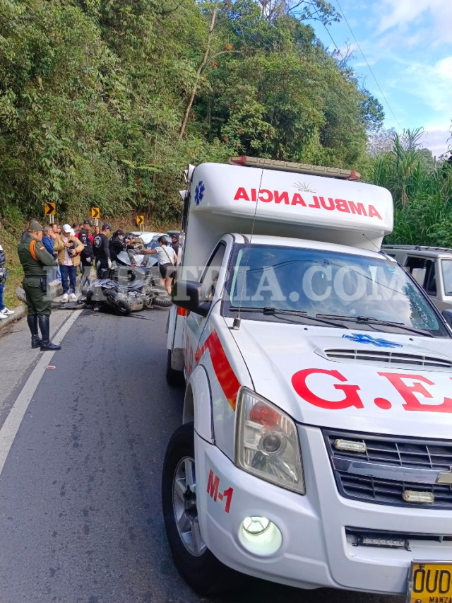 Dos mujeres sufrieron lesiones tras chocar en una motocicleta con un carro, en La Enea, de Manizales.