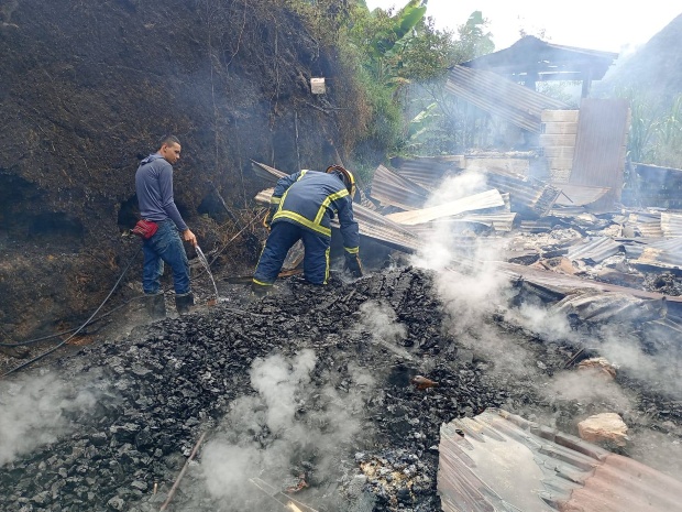 Al llegar al sitio se pudo confirmar que el incendio había consumido una vivienda y, lamentablemente, se comprobó la presencia de una persona incinerada en el lugar. Ya se solicitó el apoyo de la autoridad para la inspección.